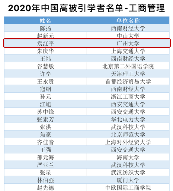 袁红平教授继2019年首次入选后,2020年再次入选工商管理学科高被引学者。袁红平教授的再次入选,反映了彩票在线购买