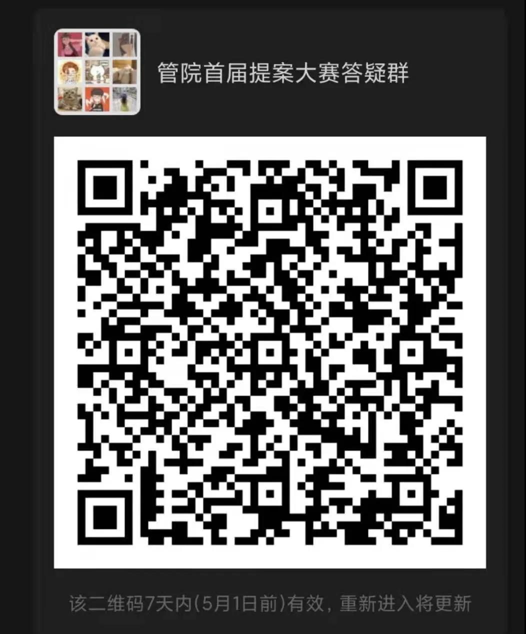 学生发现问题、研究问题、解决问题的能力;同时鼓励同学们参与进解决学院发展的各项问题当中,同学们通过提案报告的形式,为管院建设提出自己的意见,特此举办提案大赛。