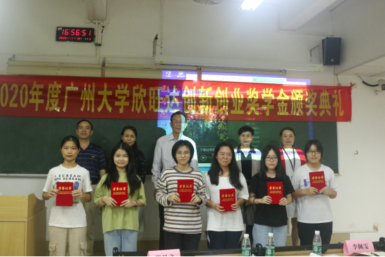 在文新楼424隆重举行2019-2020年广州大学欣旺达创新创业奖学金颁奖典礼。欣旺达奖学金由欣旺达电子股份有限公司全额支持,设立欣旺达“创新创业励志”奖学金,激励学生勤奋学习,努力进取,锐意创新,积极回报社会。2019-2020学年共评出一等奖、二等奖、三等奖和特别奖总计58名同学,总金额陆万元。