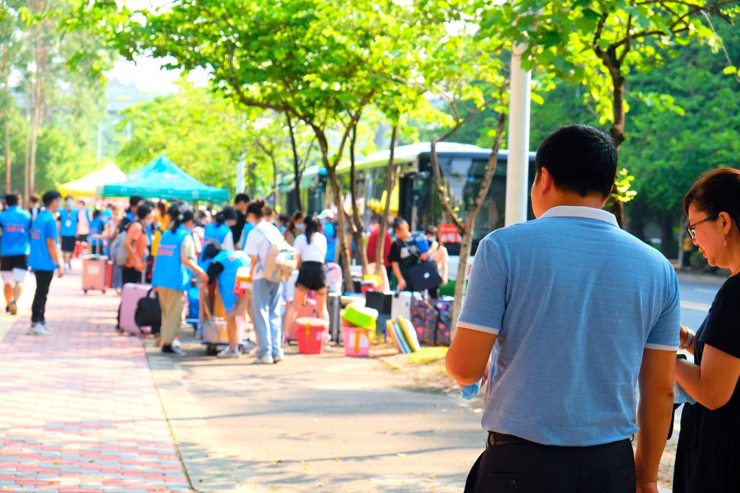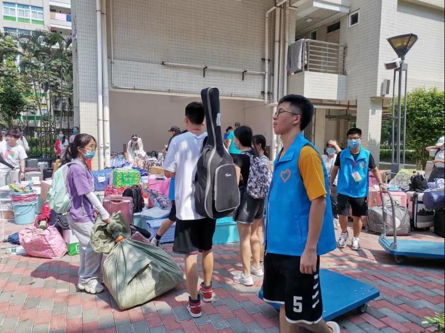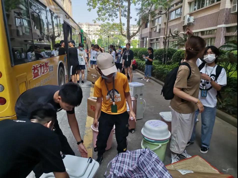 中午13:38分,我们最后一批“团友”顺利到达大学城。来到大学城校区,党委副书记陈媛老师和学工办曾梅华老师、邹婷老师、李佩雯老师有序指导搬迁工作。