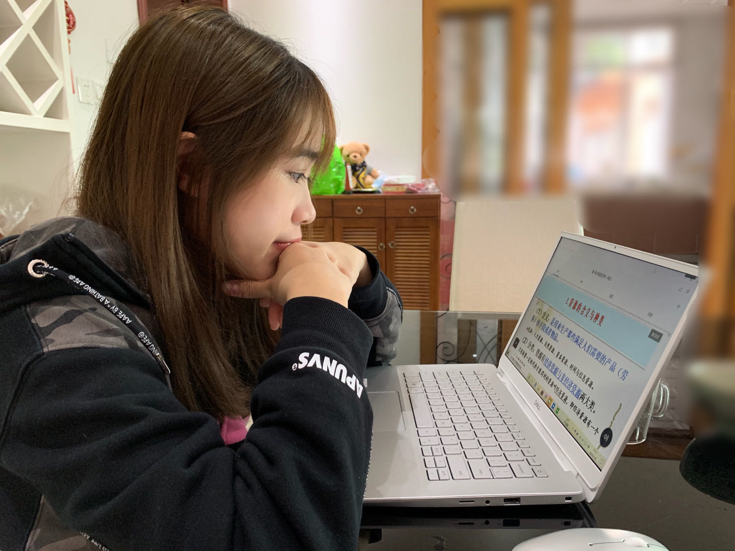 黄美琼同学认为网课最大特点就是网课的学习更多靠自律。徐琦认为网上上课十分考验我们的自制力,每天要定闹钟提醒自己不要迟到。赖诗漫表示实现了小时候在家上课的愿望。