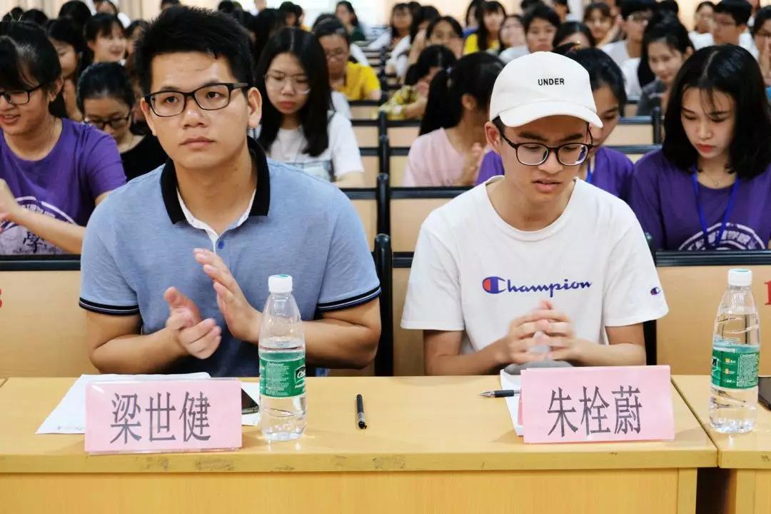 辅导员梁世健老师、学习部部长朱栓蔚,并宣布比赛正式开始。第一轮是以班级为单位两两对决的形式进行,在激烈的抢答声中,场上队员逐渐进入状态,场下的观众也跟着沸腾起来,时而为答题队员捏一把汗,时而忍不住出声提醒正确答案。一轮末时还出现了由于两队同分而临时加试的情况,即便如此,各队队员们仍然镇定自若,冷静对答。无论对错,都保持着站在台上面对下一个挑战的勇气。