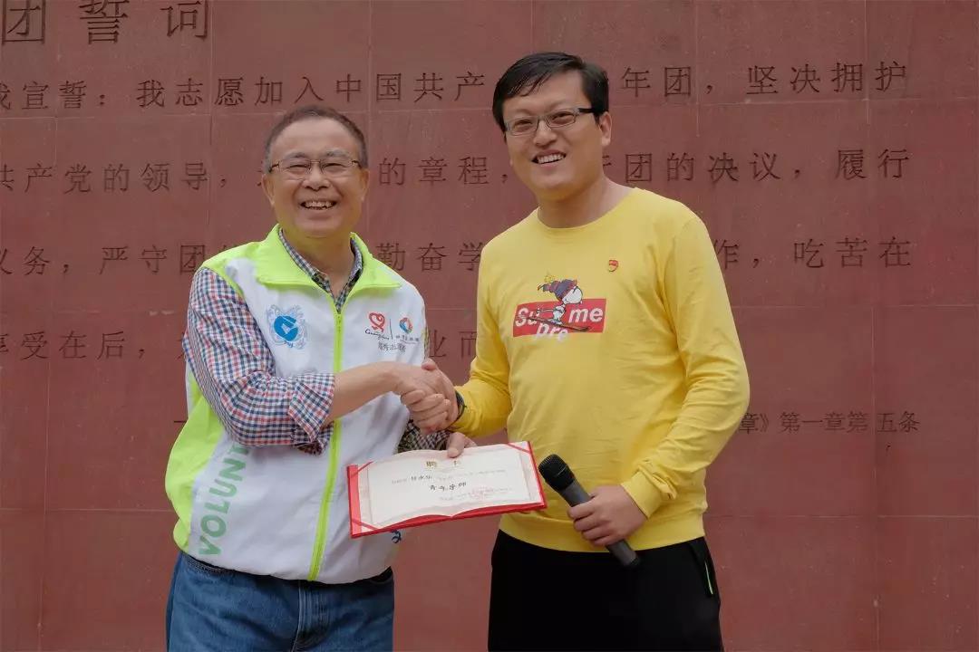 宣誓完毕,周云老师向甘永乐老师颁发了广州大学青年导师聘书并合影留念。