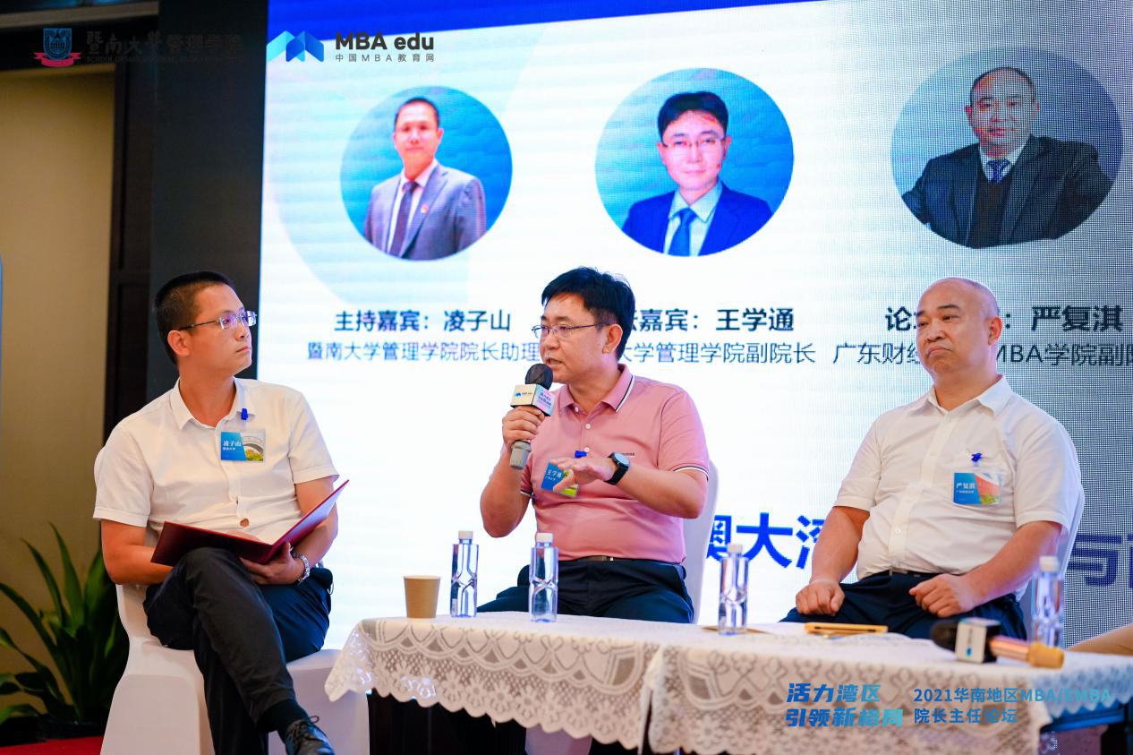 本次活动以“促进MBA/EMBA高质量发展,培养双循环下的湾区管理人才”为主题,紧紧围绕华南地区MBA人才培养、招生改革、MBA培养新模式、品牌建设与探索、师资队伍建设与优化、案例研究与创新等话题进行交流分享。