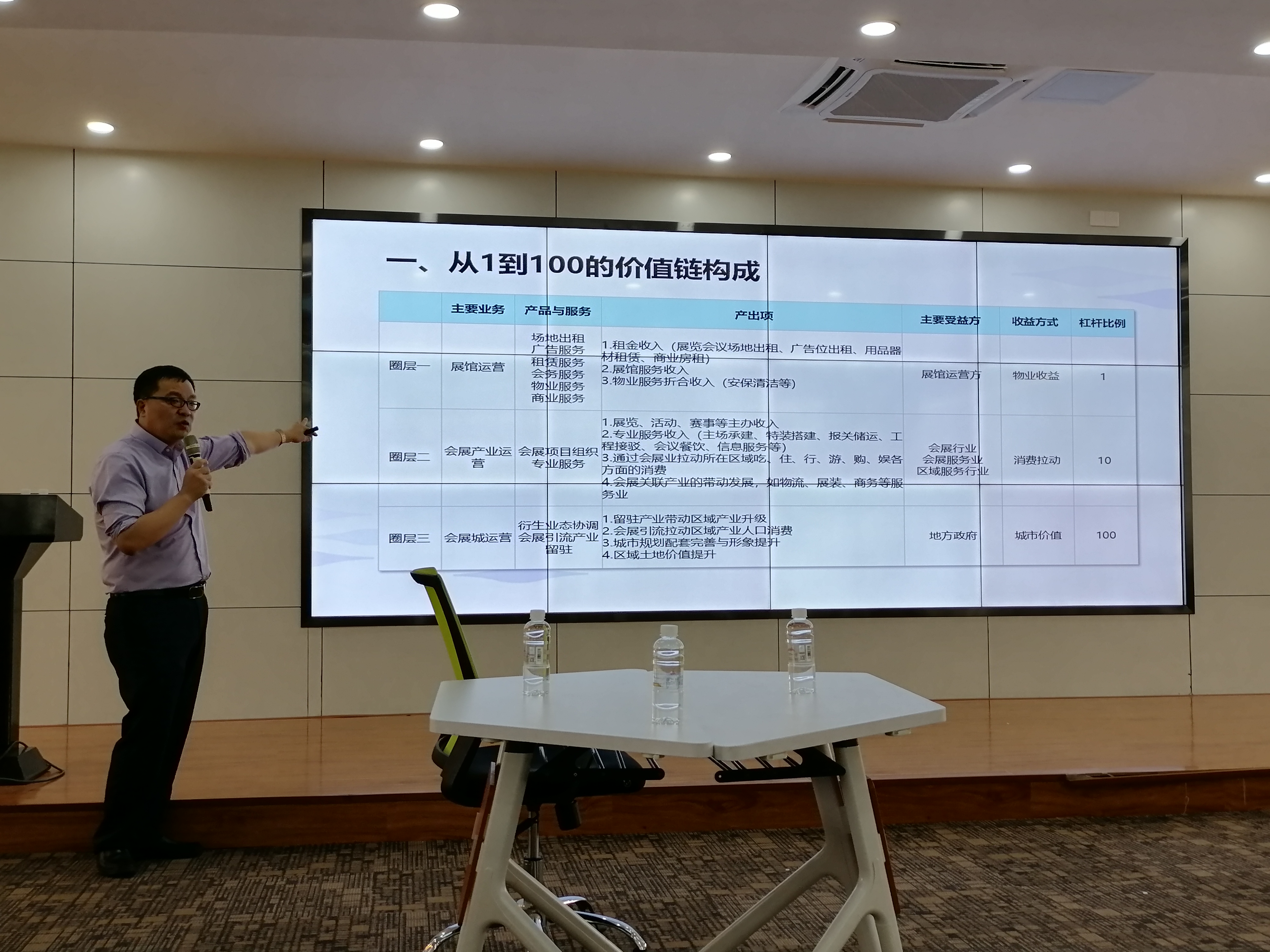 在谈到会展业的地位时,凌礼先生特别指出,如果单从展馆运营来看会展业,其价值仅为“1”,而扩展到城市会展产业链中来观察,会展业价值则提升为“10”,进一步放大到会展业对城市产业生态的联动、推动作用,其价值则能被放大到“100”。国际上不少城市因为会展业的发展吸引了产业驻留、推动产业转型升级、拉动区域产业人口消费、促进城市规划及配套设施完善、提升城市形象,实现了“100”的价值。这一系列价值的实现,都有赖于会展场馆的建设,这也是近年来国内会展场馆建设热潮兴起的原因。当然,有的地方脱离当地实际搞场馆建设,导致利用率偏低的问题也需要防范。对于如何实现产业要素的留驻和联动发展,关键是要做到三点:一是引得进,即以引展吸引产业要素集聚;二是留得下,这需要当地提供产业发展空间,以及产业政策和配套产业的支持;三是流得畅,通过交通运输配套、政策引领和技术引导来实现各种生产要素的自由流动。