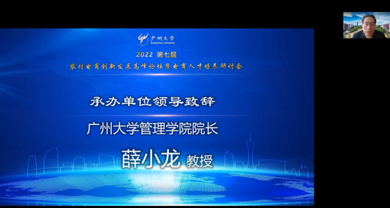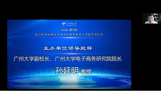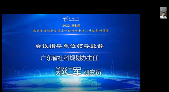 会议首先由广州大学副校长孙延明教授发表致辞,首先对复杂化疫情下与会的各位领导、专家学者与企业家朋友们的支持表达了衷心的感谢。他强调了我国在度过了绝对贫困进入小康阶段之后,数字乡村,乡村振兴、数字扶贫等措施所凸显的时代重要性,肯定了论坛近年来带来一系列的发展与改变;展望当前数字经济时代阶段中,农村电商应用疆域的创新拓展,汇报了广州大学在数字经济与电子商务、数字乡村、数字政府治理方面的迅猛发展,以及高水平电子商务人才培养体系目标。