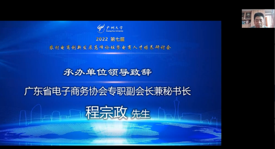 广东省电子商务协会专职副会长兼秘书长程宗政就协会推动广东省地区出台电子商务扶贫政策、制定发展电子商务生态等顶层设计、校企合作、电商人才等方面做出演讲与致辞。