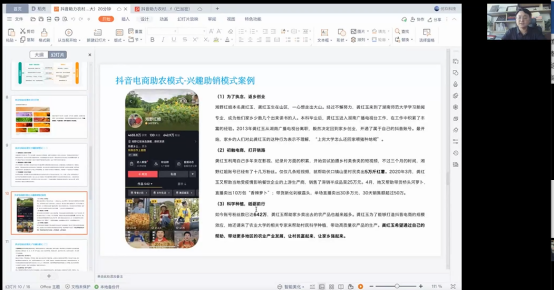 字节跳动校企负责人伍黎先生就“抖音助力农村电商 促进乡村振兴”主题进行发言。伍先生从抖音电商助力乡村发展总体情况、用户特征、助农模式及部分案例板块,分析了抖音助农的推送方式和特点。此外,伍先生基于兴趣助销、品牌打造、人才助力等助农模式,提出抖音电商致力于实现品牌化、融合化和数智化的助农措施。