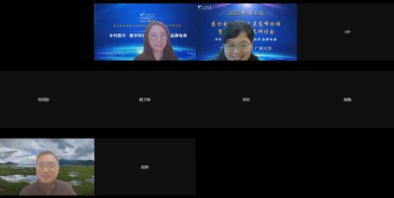 院长薛小龙教授、广州大学电子商务研究院执行院长黄丽娟教授出席了本次论坛并发表了乡村振兴与电商人才培养相关讲话。本次论坛由广东省决策咨询研究基地-农村电子商务研究中心副主任朱慧副教授担任主持。