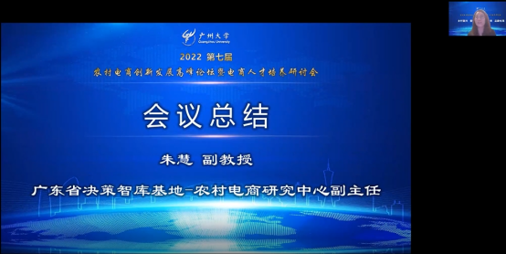 会后,朱慧副教授进行了会议总结。朱教授表示,此次会议取得圆满成功,相信在大家的共同努力下,电子商务专业以及整个行业会一直向着更好的方向发展,在助农模式和人才培养体系等方面不断开拓创新,助力农村电商蓬勃发展。至此,本次论坛圆满结束。