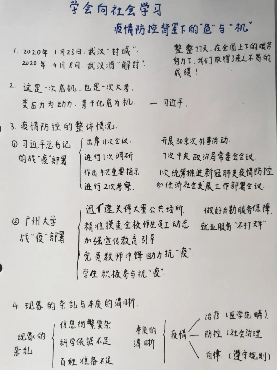 142名学子直播思政课——《学会向社会学习——疫情中的“危”与“机”》。