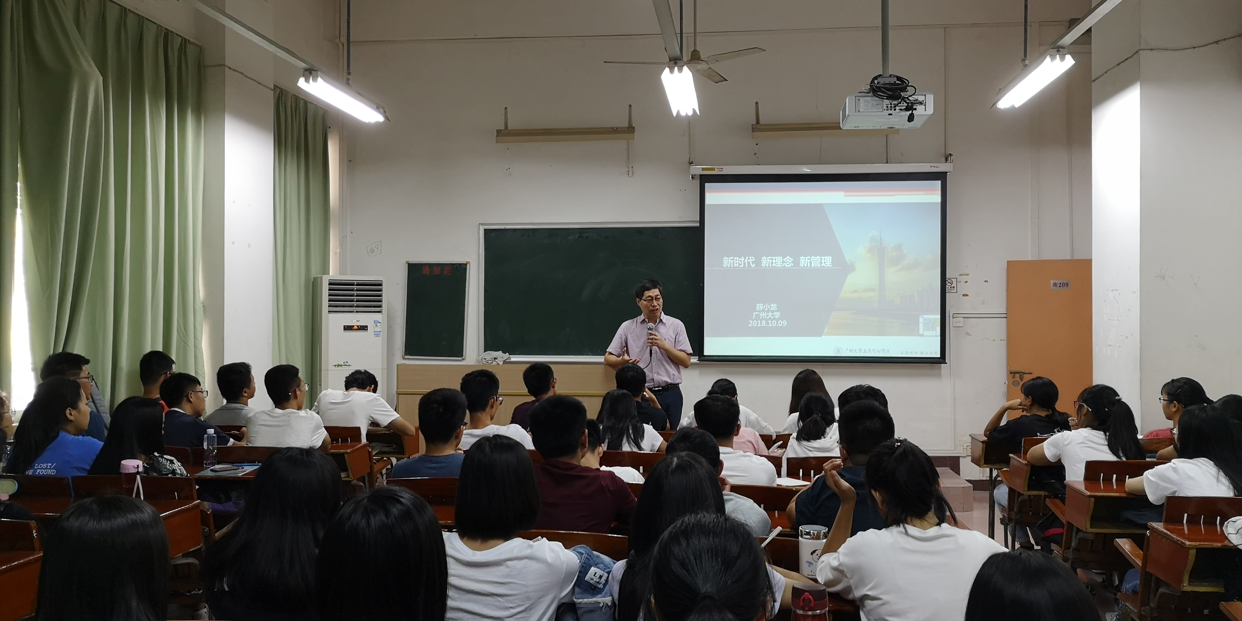 院长薛小龙教授为2018级物流专业同学主讲了思政第一课。薛院长以“新时代·新理念·新管理”为主题,讲解了新时代下国家的发展变化,阐释了发展新理念,结合彩票在线购买