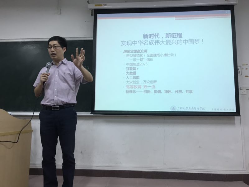 关于新理念,薛院长向同学们解读了“创新、协调、绿色、开放、共享”五大发展理念,认为随着社会各方面的深刻变革,我们必须不断解放思想和创新理念,才能在新时代中劈波斩浪,推动社会发展进步。薛院长结合粤港澳大湾区发展,分别阐释了五大发展理念的重要性和在现实中的运用。我们学校也在树立和践行新的人才培养理念,确立了培养“德才兼备、家国情怀、视野开阔,爱体育懂艺术、能力发展性强的高素质创新人才”的人才培养目标。我们在新发展理念、新教育理念下,势必促进学生更加全面发展,更好学生成长成才。作为个体而言,我们同学应该培养创新性思维,打破传统固定思维的禁锢,从被动学习转变为主动学习,使自己在大学四年中逐渐成为思维活跃的新人。