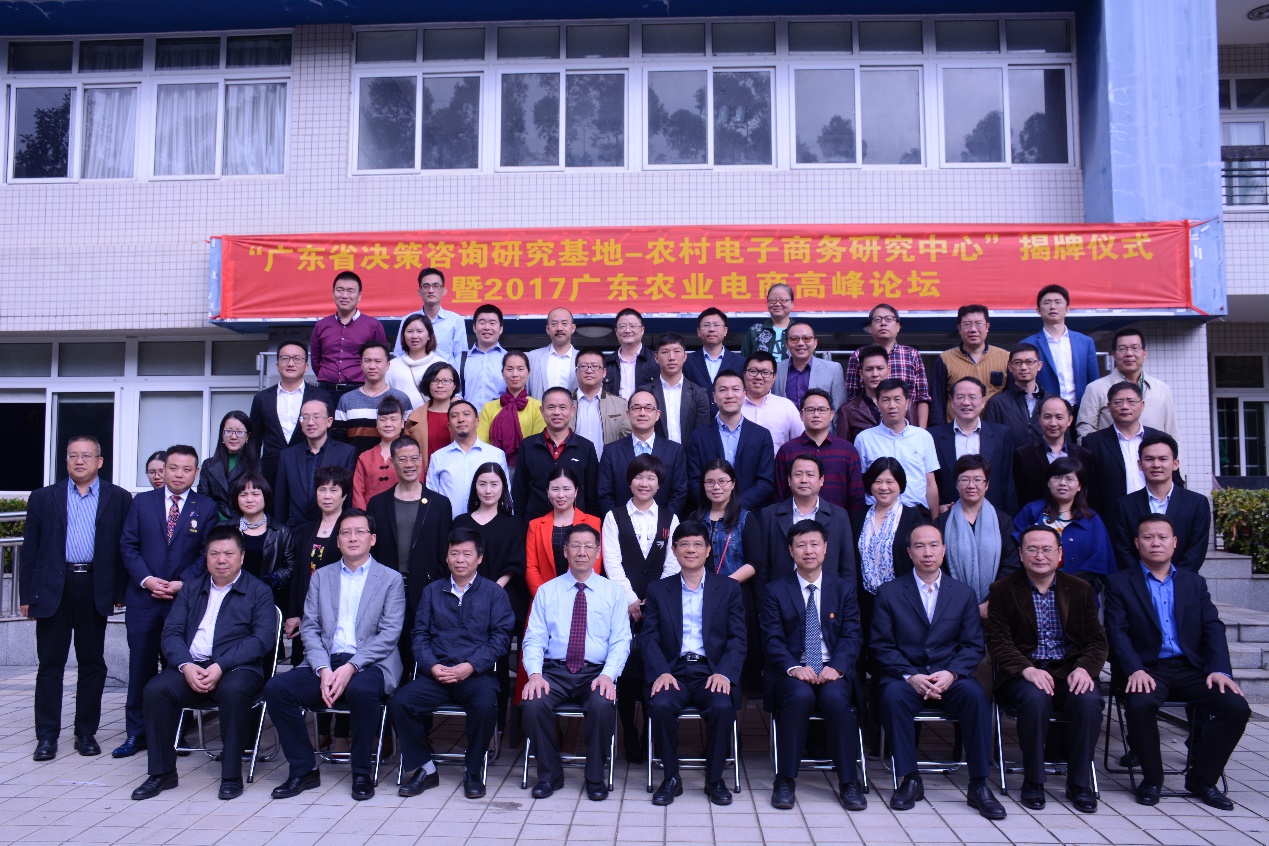 副书记甘健强等院、基地领导,来自中国社科院、中山大学、华南理工大学、暨南大学、南昌大学等来自全国30所院校教授及研究机构代表以及来自京东、苏宁、唯品会等60家农产品电商龙头企业高管等近100人见证了揭牌仪式。