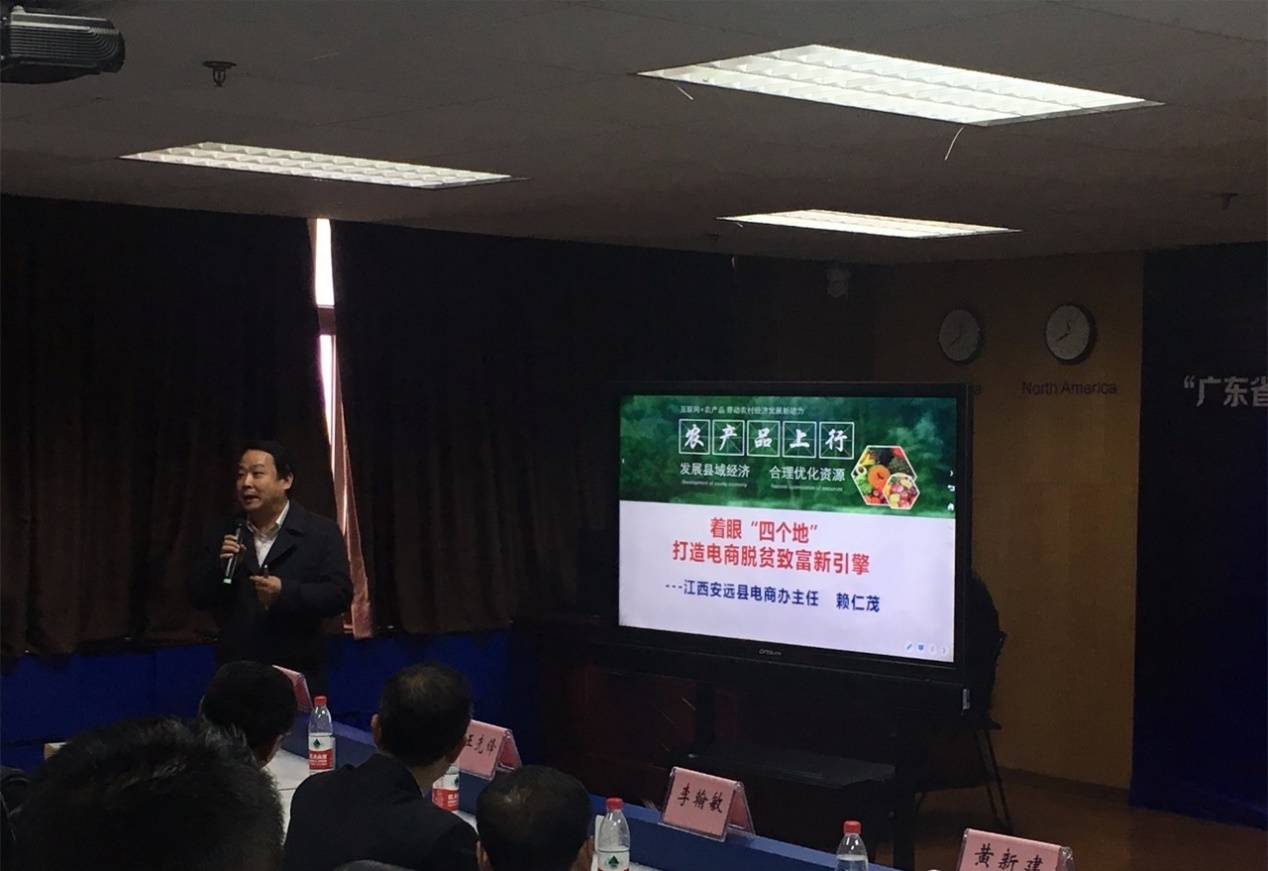 图11 全国电商扶贫示范县安远县科技局局长兼电商办主任赖仁茂发表主题演讲