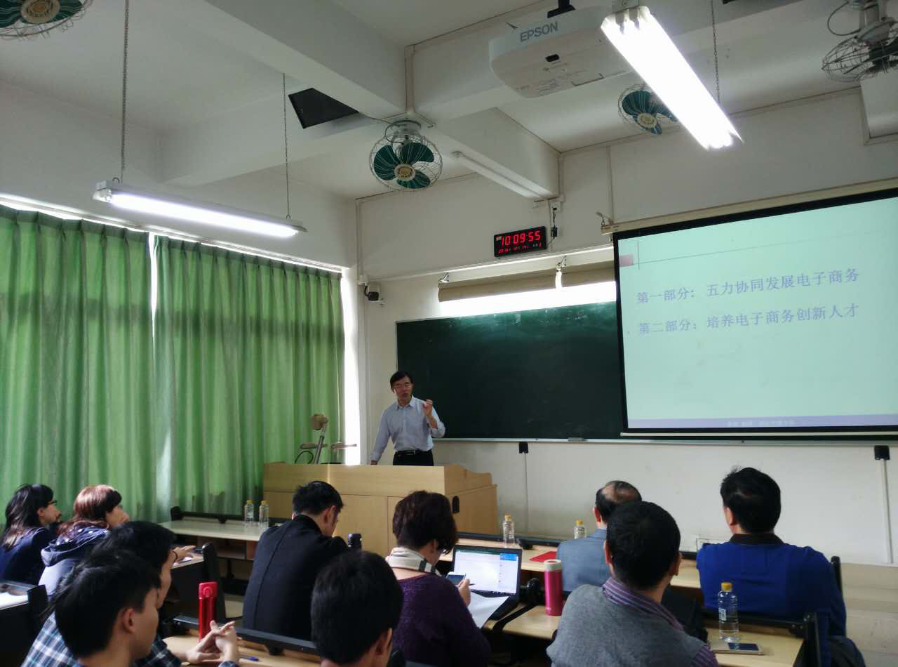 邀请进行学术交流活动,并以“五力协同发展电子商务”为主题分享了近期研究成果。院党委书记谢如鹤、院长庞永师、华南师范大学余以胜教授、广东省互联网经济研究会执行会长蒋文彪、秘书长秦三定出席讲座。物流电商系系主任黄丽娟教授主持。参加本次讲座的还有80余名工商彩票在线购买