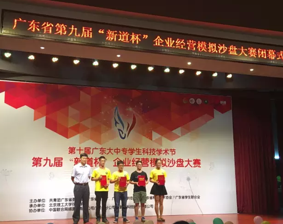 2016年6月4日~5日,由团省委、省教育厅、省科技厅、省科学技术协会和省学联主办,北京理工大学珠海学院、新道科技股份公司承办的第十届广东大中专学生科技学术节之第九届“新道杯”企业经营模拟沙盘大赛顺利举办。广州大学、中山大学等来自全省43所本科院校、番禺职业技术学院等46所高职院校代表共445名学生参与竞逐,参赛人数创下9年来历史新高。
