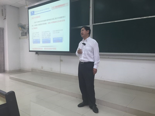 庞永师院长主持举行了《我对工程造价管理专业的理解》讲座。首先,吴秘书长从工程造价的概念作为开篇,详细分析了工程造价具体内容,专业的发展历程,工程造价管理与项目管理的关系,工程造价专业的定位等;其次,吴秘书长讲解了工程造价咨询业务的分布情况,分析了工程造价管理中存在的问题,以及针对存在问题所要实施的工作任务和工程造价体系等;最后,吴秘书长根据自己对专业的理解,从政治素质、文化素质、业务素质等三个方面探讨了提升工程造价人员能力的路径,并对工程造价人才培养提出了“技术+管理”的模式,以满足工程造价专业面临的机遇和挑战。本次讲座引起了老师和同学的极大兴趣,产生了良好的效果。