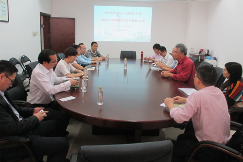 2016年4月26日,北京师范大学珠海分校物流学院院长杨蓉教授一行6人来彩票在线购买 交流,彩票在线购买 院长庞永师教授、党委书记谢如鹤教授及相关院系领导参加了交流研讨。
