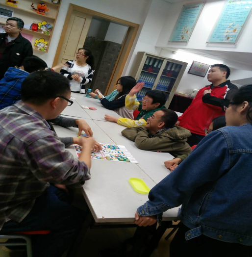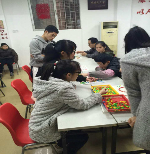 阳光灿烂,志愿者们怀着激动的心情提前来到六榕街康园工疗站。活动开始前,因为工友们没到齐,志愿者就先和工友们进行了工友们的拿手绝活——象棋,围棋,扑克等,志愿者们全心投入,积极主动与工友们玩耍。简单温馨的小游戏让志愿者和工友们互相熟络。