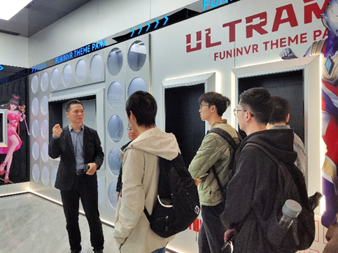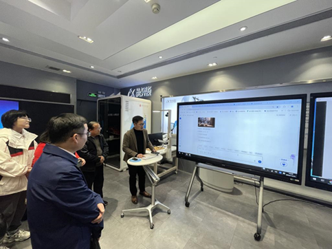 1月2日上午,在胡勇军老师的带领下,AI数字化创意和智能交互方向的师生一行前往卓远企业进行调研。通过企业的介绍,同学们了解了VR内容制作的流程及做出优秀作品所具备的核心要素,体验了VR设备,基于了解和体验项目团队针对设备的使用痛点和内容提出了对应解决方案。